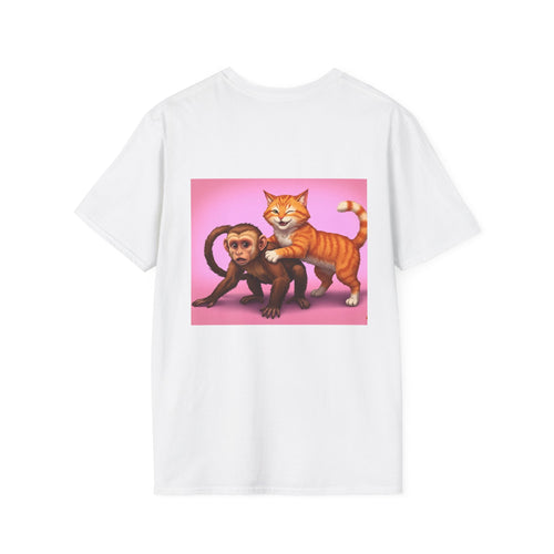Playful Animal Graphic T-Shirt, Unique Cat and Monkey Tee, Casual Wear, Gift for Animal Lovers, Birthday Gift, Fun Everyday Style